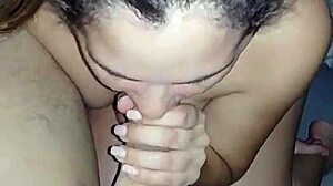 Het 43-årig milf Hanysy ger blowjob med sperma i munnen