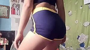twerking in tight shorts flashing ass on sofa exhibitionist dance