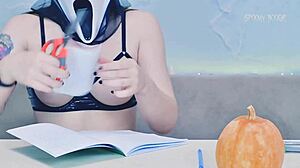 sexy ghostface carves erotic pumpkin for halloween trick treat
