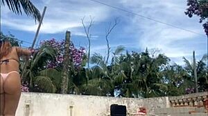 i'm a nerdy slut giving two bbc blowjobs by the resort pool