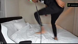 White Guy Fucks Ebony Beauty Through Yoga Pants Hole