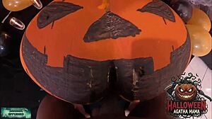 brazilian milf's halloween jack o lantern gaping pussy takes bbc pounding
