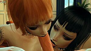 Hey, check this goth fit futa with female in 3D action