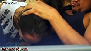 Couple Picks Up Busty Teen Hitchhiker for Deepthroat Threesome Doggystyle