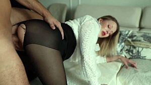 Hungry neighbor rips pantyhose for anal fun 😈