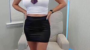 milf secretary in leather skirt masturbates in office with sex toy 😏