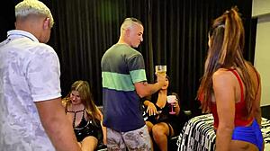 Születésnapi afterparty vadul alakul nagy cicikkel és csoportos farok akcióval.