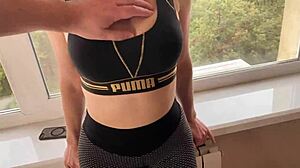 Cheating Wife Rips Yoga Pants for Hard Fucking and Facial While on Phone with Hubby