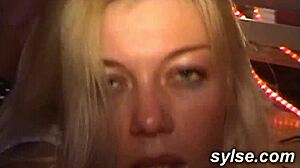 Blonde masseuse jerks client to creampie in public massage parlor.