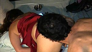 french amateur fucks in satin lingerie with blowjob and rimming