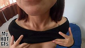 Sweet Japanese teen inserts small penis.