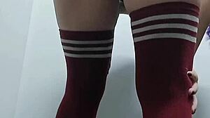 Cheeky Change Room Slut Tries Topless Nude Thigh-High Socks