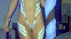 hey rextipy and melina oil up those big natural tits on skinny tall black frame for hot amateur ass play