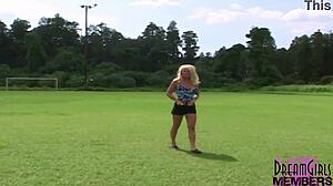 wild girl fingers herself in a public park