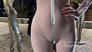 Naughty Lada Flashes Milf Tits In Public Street!