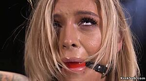imagine this busty blonde bound tight fingered hard in bizarre bondage
