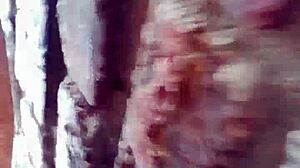 Upskirt banging with big rounded ass girl shaking from squirting climax