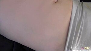 Cheerful blonde hottie slowly takes off clothes for bound masturbation and blowjob