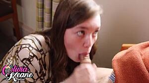 British 18yo chubby teen with big natural tits sucks older stranger's cock