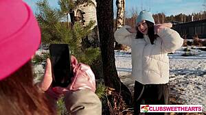 cold day turns hot as cute neighbors lick shaved pussies juicy