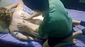 oil massage on couple in thong rips clothes for intimate oral