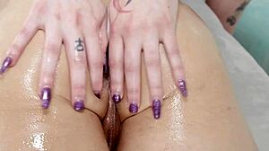 In the glamorous world of lesbian domination, a submissive beauty indulges in messy pussy eating with fingering and oral play.