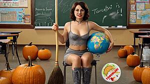 Witch teacher, wanna ride my broomstick in this halloween classroom fuck fest?