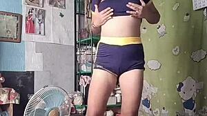 Petite asian teen dances sexy in tight shorts
