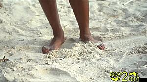 giggles' feet sinking into warm sand during beach fun on beat2feetcom