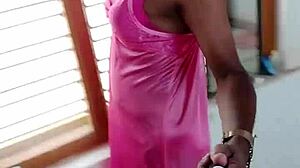 INDIAN CD LARA DSOUZA in pink satin nighty gets sexy bdsm