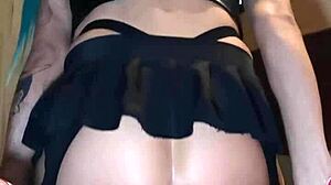 wanna watch this sissy slut in garters ride her huge dildo for gape training?