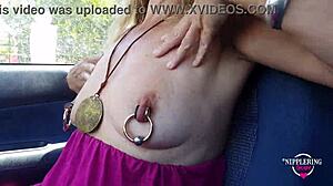 Hot Mom Flashes Pierced Tits And Pussy Outdoors With Extreme Stretched Nipple Piercings