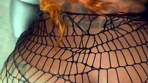 Sexy Stripper Strips Fishnets Ripped for Big Black Cock Creampie