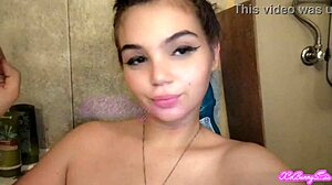cute skinny neighbor smokes solo in homemade bathroom fetish clip