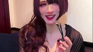 asian shemale masturbates while crossdressing!