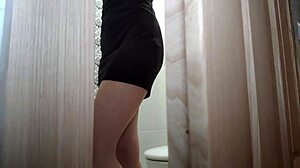 Voyeur catches teen in toilet rips skirt stockings for close-up creampie pounding