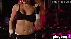 whoa my amazing big tits milf model deadlifts then strips hot for you