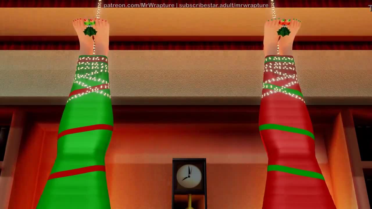 Yuri Bondage Sex Hung By Chimney With Care Christmas Theme 3D - Ataduras Envueltas, Cinta de Sexo, Lezdom