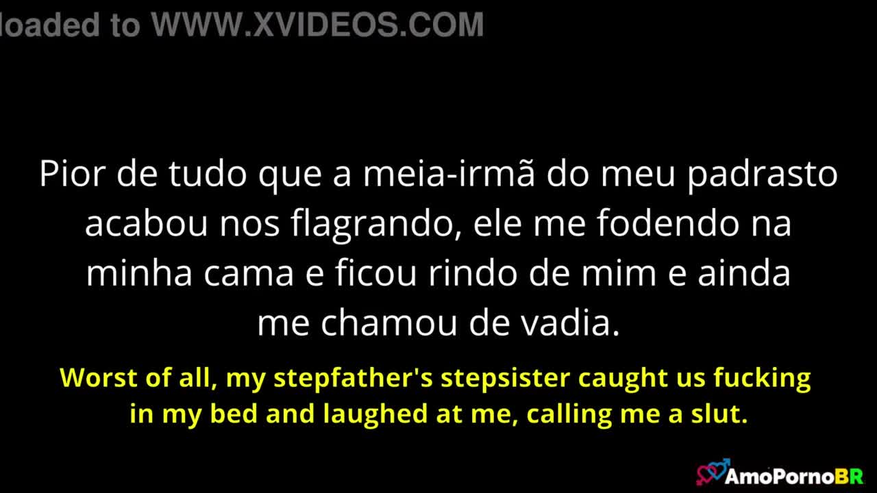 Minha meia-irmã do padrasto me flagrou fodendo ele e riu me chamando de vadia 😈😂 -
