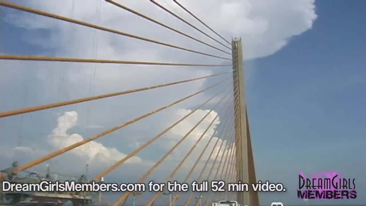 TOPLESS DREAM GIRL FLASHES BIG TITS IN CONVERTIBLE OVER SKYWAY BRIDGE - WANNA SEE? -
