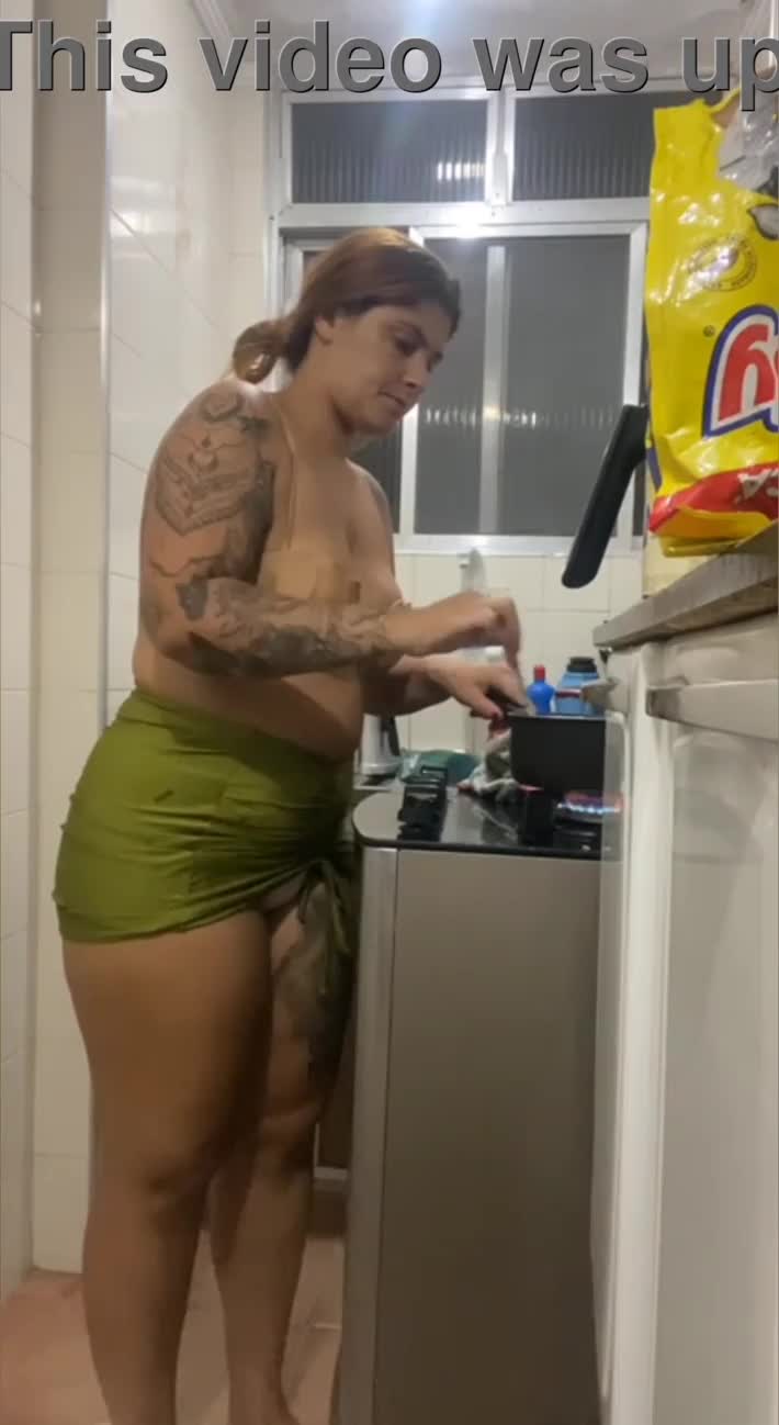 Live Kitchen Mini Skirt Flashes Swollen Fat Pussy! -