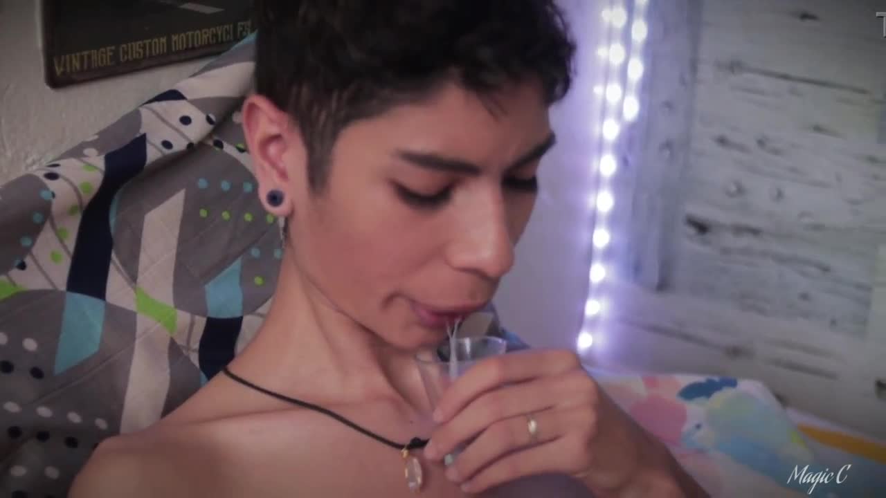 Hot big dick latino jerks with spit, cums in cup, drips into mouth to swallow own cum?